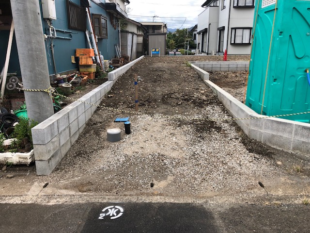 造成後の現地。全2区画とし、それぞれ上下水道を接続。隣地の方との交渉も完了しました。