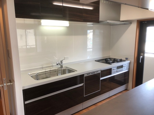 買取後リフォーム済のキッチン。次の購入いただく所有者が安心して住めるよう、設備の点検を行い入念なリフォームを行いました。