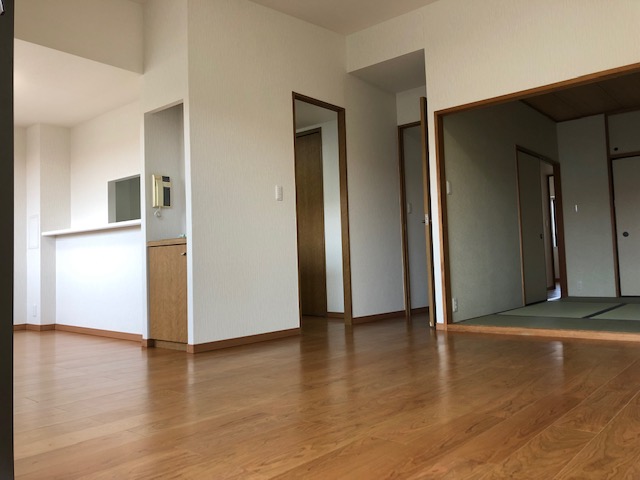 買取後リフォーム済のリビング。次の購入いただく所有者が安心して住めるよう、設備の点検を行い入念なリフォームを行いました。